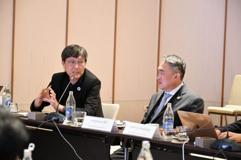 Following the opening session, executives from partner organizations shared their institutional background and reaffirmed their commitment to advancing the End-of-Waste Project. Featured speakers included Mr. Kittiphan Bangyikhan, Director of the Division of Raw Materials Innovation and Downstream Industries, Department of Primary Industries and Mines (DPIM); Mr. Numpol Limprasert, Vice Chairman of the Institute of Water and Environment for Sustainability, Federation of Thai Industries (FTI); and Dr. Sarawut Lerspalungsanti, Deputy Director of the National Metal and Materials Technology Center (MTEC), NSTDA.