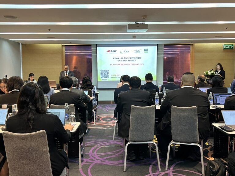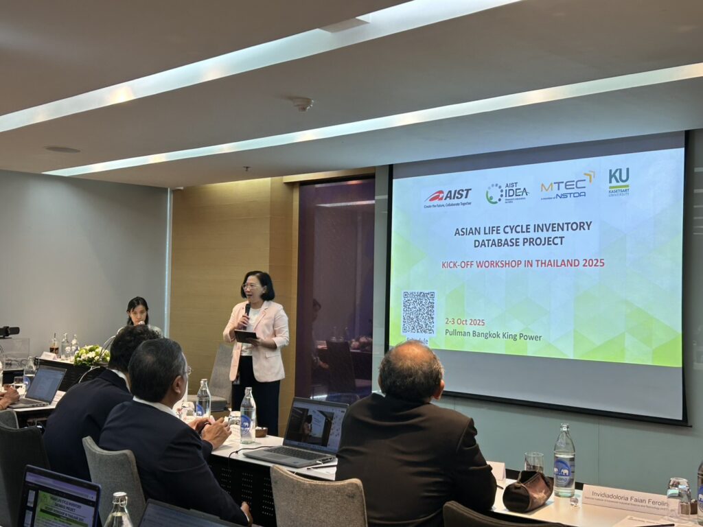 On October 2, 2025, at Pullman Bangkok King Power (Rangnam), the National Science and Technology Development Agency (NSTDA), through the National Metal and Materials Technology Center (MTEC), in collaboration with the Research Laboratory for IDEA (IDEA Lab), the National Institute of Advanced Industrial Science and Technology (AIST), Japan, and Kasetsart University, organized the “Kick-Off Workshop in Thailand 2025” under the Asian Life Cycle Inventory (LCI) Database Project. This two-day workshop (October 2–3, 2025) aims to improve understanding of the importance of developing comprehensive and systematic datasets, creating a strong network to support Life Cycle Inventory development and its various uses, such as carbon footprint calculation and Life Cycle Assessment (LCA).