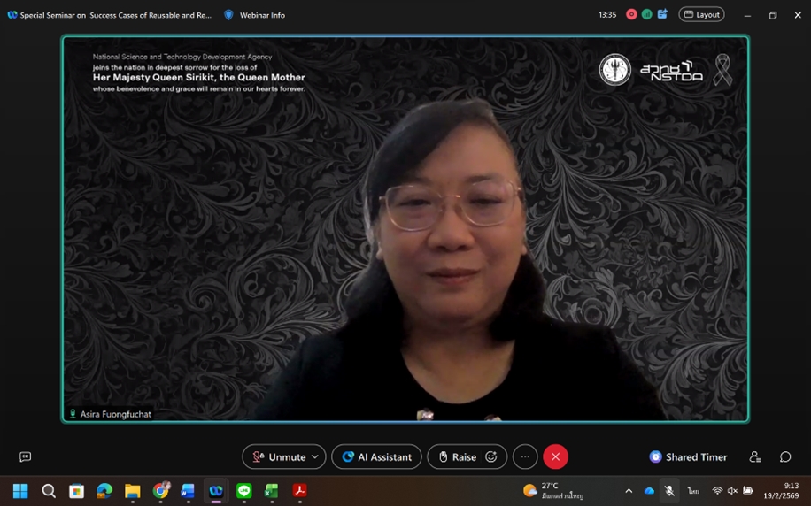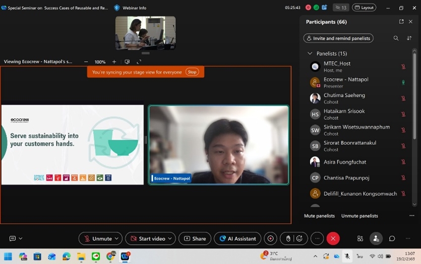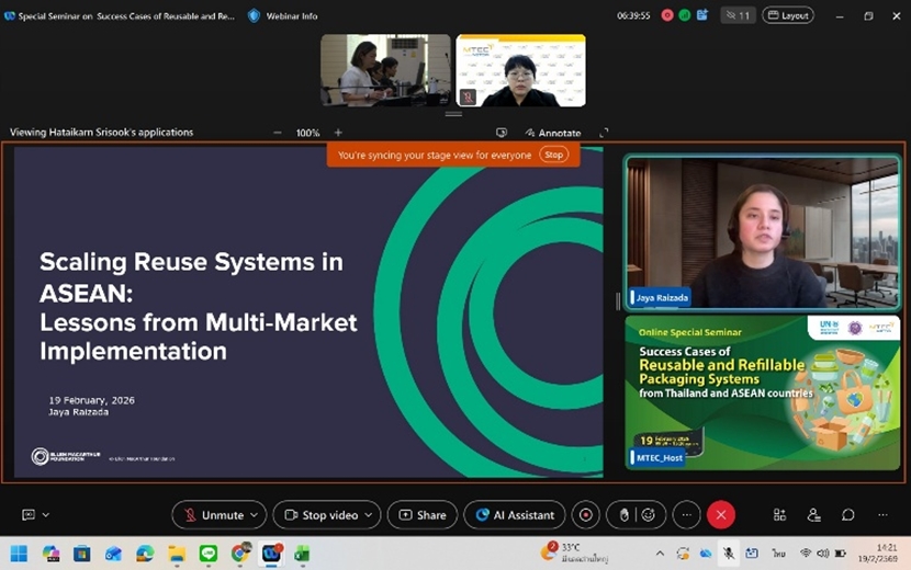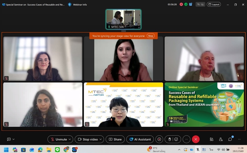On 19 February 2026, the National Metal and Materials Technology Center (MTEC), under the National Science and Technology Development Agency (NSTDA), with support from the United Nations Environment Programme (UNEP), organized an online seminar titled “Success Cases of Reusable and Refillable Packaging Systems from Thailand and ASEAN countries .”