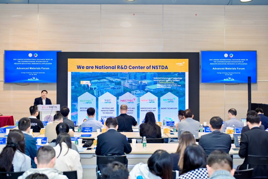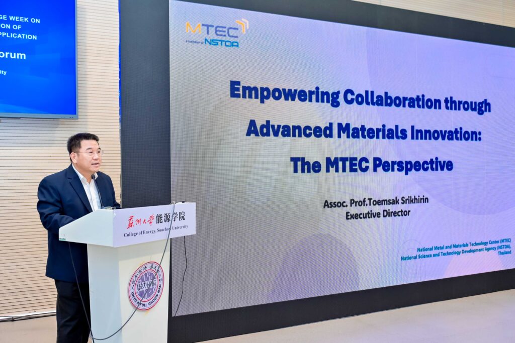 The events, held at the College of Energy, Soochow University, were attended by Dr. Sitthisuntorn Supothina, Deputy Executive Director of MTEC, Dr. Chanchana Thanachayanont, Director of Environment Research Group, Dr. Thipjak Na Lampang, Research Team Leader of Wood Engineering for Sustainability Research Team, and the member of MTEC’s research team. Organized under the theme “Advanced Materials Forum,” the conference gathered more than 60 participants, including experts, researchers, students, and industry representatives from five countries.