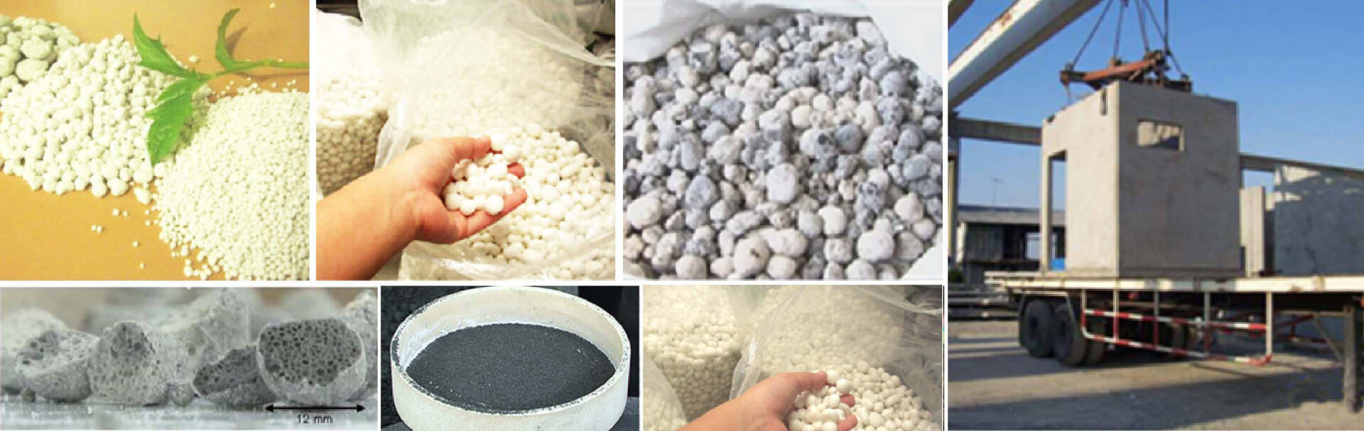 5. เม็ดหินเบา (Lightweight aggregate) มีโครงสร้างเป็นรูพรุนทั่วทั้งเม็ด เนื้อวัสดุเป็นโฟมเซรามิกส์ ใช้แทนหินธรรมชาติในงานก่อสร้างที่ต้องการให้เบาและสามารถรับแรงได้ หรืองานประดับตกแต่งอื่นๆ เช่น ใช้เป็นหินประดับในตู้ปลา เนื่องจากไม่เป็นพิษต่อสัตว์น้ำ