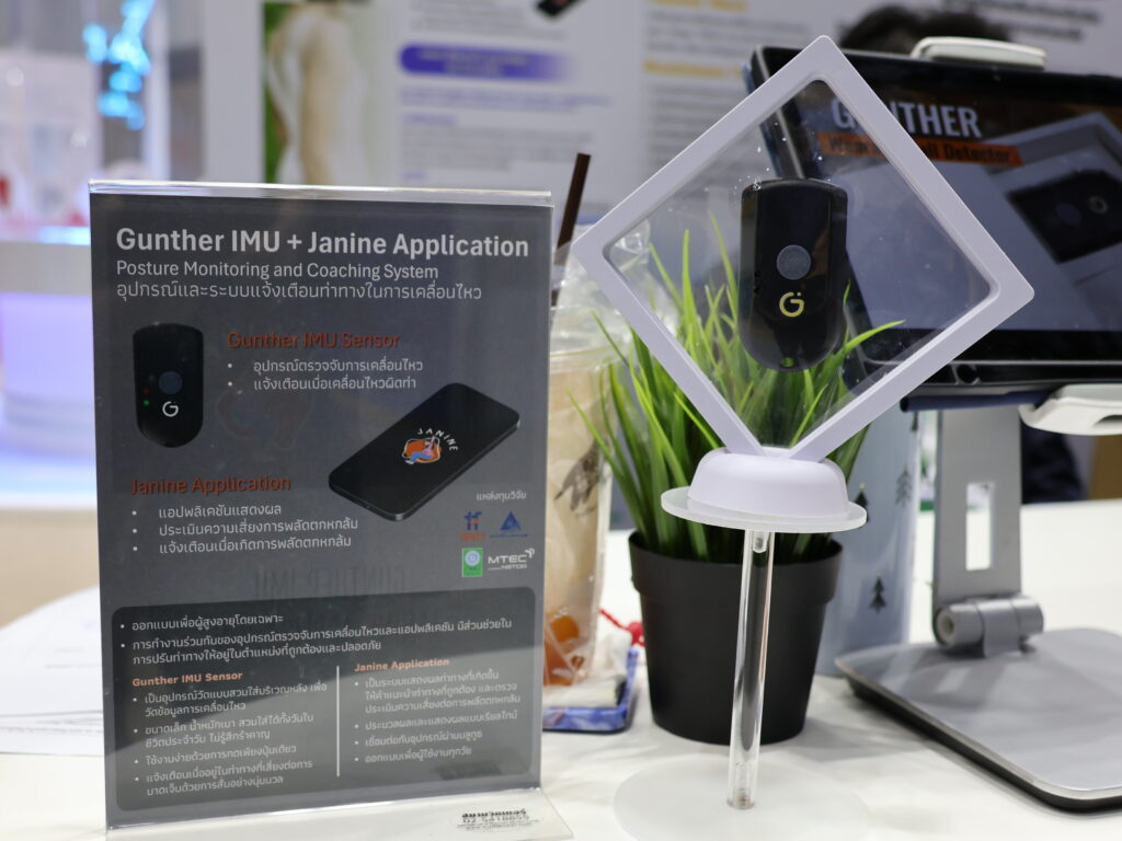 1. Gunther IMU: อุปกรณ์เซนเซอร์ตรวจวัดแบบสวมใส่ขนาดเล็ก ทำงานร่วมกับแอปพลิเคชัน Janine เพื่อเสริมความปลอดภัยในการใช้ชีวิตประจำวันแก่ผู้สูงอายุ โดยจะสั่นแจ้งเตือนเมื่อตรวจพบการเคลื่อนไหวผิดท่า เช่น หลังค่อม และแจ้งเตือนฉุกเฉินไปยังผู้ดูแลทันทีที่ตรวจพบการ พลัดตกหกล้ม