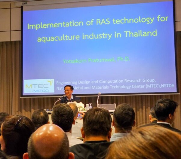 ที่ผ่านมา สวทช. ได้พัฒนาระบบ RAS สำหรับกุ้งและปลากะพงซึ่งเป็นสัตว์น้ำเศรษฐกิจที่สำคัญของประเทศไทย ซึ่งระบบที่พัฒนาขึ้นมีราคาที่ถูกลงกว่าในท้องตลาดทำให้คืนทุนได้เร็วและสามารถควบคุมระบบการเลี้ยงได้ง่ายขึ้น การพัฒนาดังกล่าวได้อาศัยเทคโนโลยีการออกแบบและคำนวณทางวิศวกรรมขั้นสูง (Advanced Engineering Design & Computation) รวมทั้งเทคโนโลยีระบบควบคุมแบบอัตโนมัติ (Automatic Control) และอินเทอร์เน็ตของสรรพสิ่ง (Internet of Things: IoT) นอกจากนี้ยังมีแผนการพัฒนาระบบต่อโดยประยุกต์ใช้เทคโนโลยีปัญญาประดิษฐ์ (Artificial Intelligence: AI) และการประมวลผลภาพ (Image Processing) ในการติดตามและควบคุมการเลี้ยง