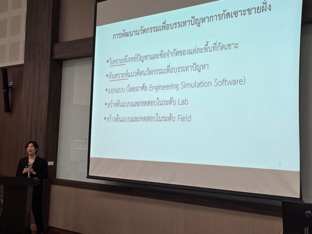 สำนักงานพัฒนาวิทยาศาสตร์และเทคโนโลยีแห่งชาติ (สวทช.) โดย ดร.สมบูรณ์ โอตรวรรณะ นักวิจัย ศูนย์เทคโนโลยีโลหะและวัสดุแห่งชาติ (เอ็มเทค) และนายพงศ์ภัทร ทองมาก ที่ปรึกษาอาวุโส ITAP เข้าร่วมเป็นวิทยากรในการประชุมเชิงปฏิบัติการ เรื่อง “การขยายผลนวัตกรรมเชิงสร้างสรรค์ที่ได้รับแรงบันดาลใจจากธรรมชาติ ในการบรรเทาการกัดเซาะชายฝั่งและการฟื้นฟูสิ่งแวดล้อมและชุมชนชายฝั่งสู่ระดับนโยบาย”