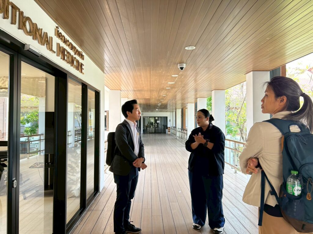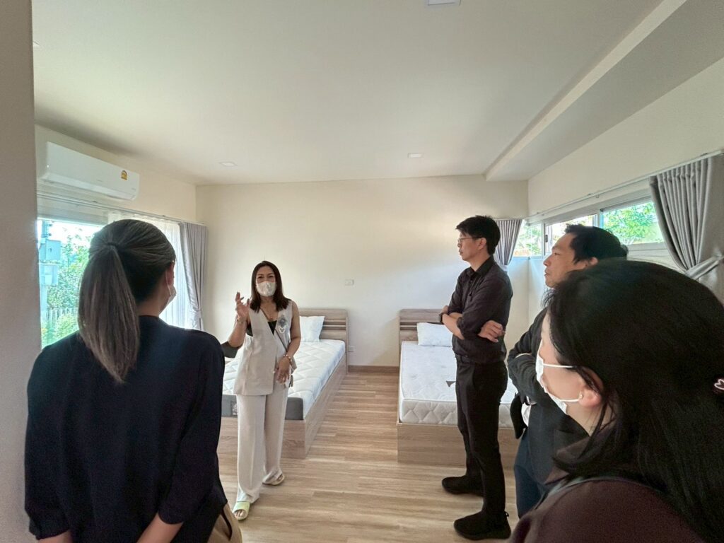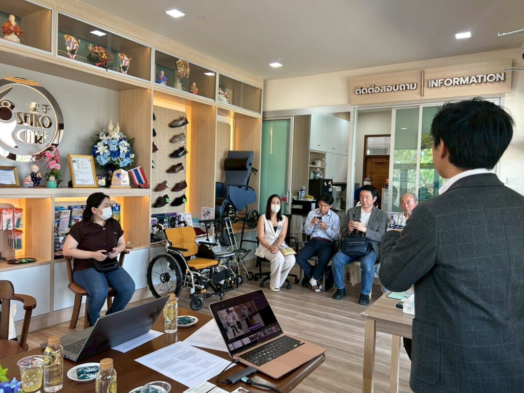 ในช่วงบ่าย คณะได้เข้าเยี่ยมชมศูนย์ฟื้นฟูดูแลสุขภาพเซโกะแคร์ สันกำแพง ซึ่งเป็นศูนย์ดูแลผู้สูงอายุที่นำแนวคิดและมาตรฐานการดูแลแบบญี่ปุ่นมาประยุกต์ใช้ โดยเน้นการฟื้นฟูสุขภาพเพื่อให้ผู้สูงอายุสามารถกลับไปใช้ชีวิตร่วมกับครอบครัวได้ พร้อมทั้งนำเทคโนโลยีและนวัตกรรมมาสนับสนุนการดูแลแบบองค์รวม ทั้งด้านร่างกายและจิตใจ