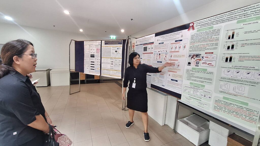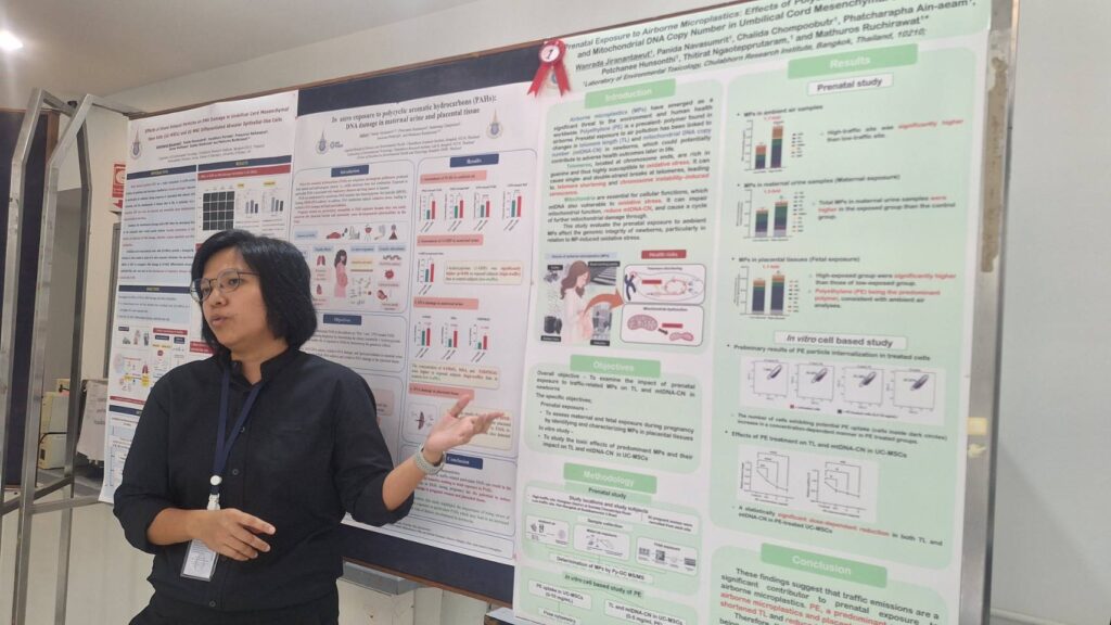 คณะนักวิจัยเอ็มเทคได้รับการต้อนรับจาก ดร.จันทรกานต์ พิภพมงคล ผู้ช่วยประธานสถาบันวิจัยจุฬาภรณ์ ฝ่ายวิจัย และนักวิจัยเชี่ยวชาญ ห้องปฏิบัติการวิจัยชีวเคมี พร้อมด้วยคณะนักวิจัยจากงานวิจัยด้านพิษวิทยาสิ่งแวดล้อม และอนามัยสิ่งแวดล้อม ได้แก่ รศ.ดร.พนิดา นวสัมฤทธิ์ นักวิจัยเชี่ยวชาญ ห้องปฏิบัติการวิจัยพิษวิทยาสิ่งแวดล้อม ดร.ทวิช สุริโย นักวิจัยชำนาญการ ห้องปฏิบัติการวิจัยเภสัชวิทยา ดร.ขวัญรวี สิริกาญจน และดร.นิศานาถ เจริญลาภ นักวิจัยเชี่ยวชาญ ห้องปฏิบัติการวิจัยเทคโนโลยีชีวภาพ โดยคณะได้รับชมวิดีทัศน์แนะนำบทบาท ภารกิจ และผลงานวิจัยของสถาบันวิจัยจุฬาภรณ์