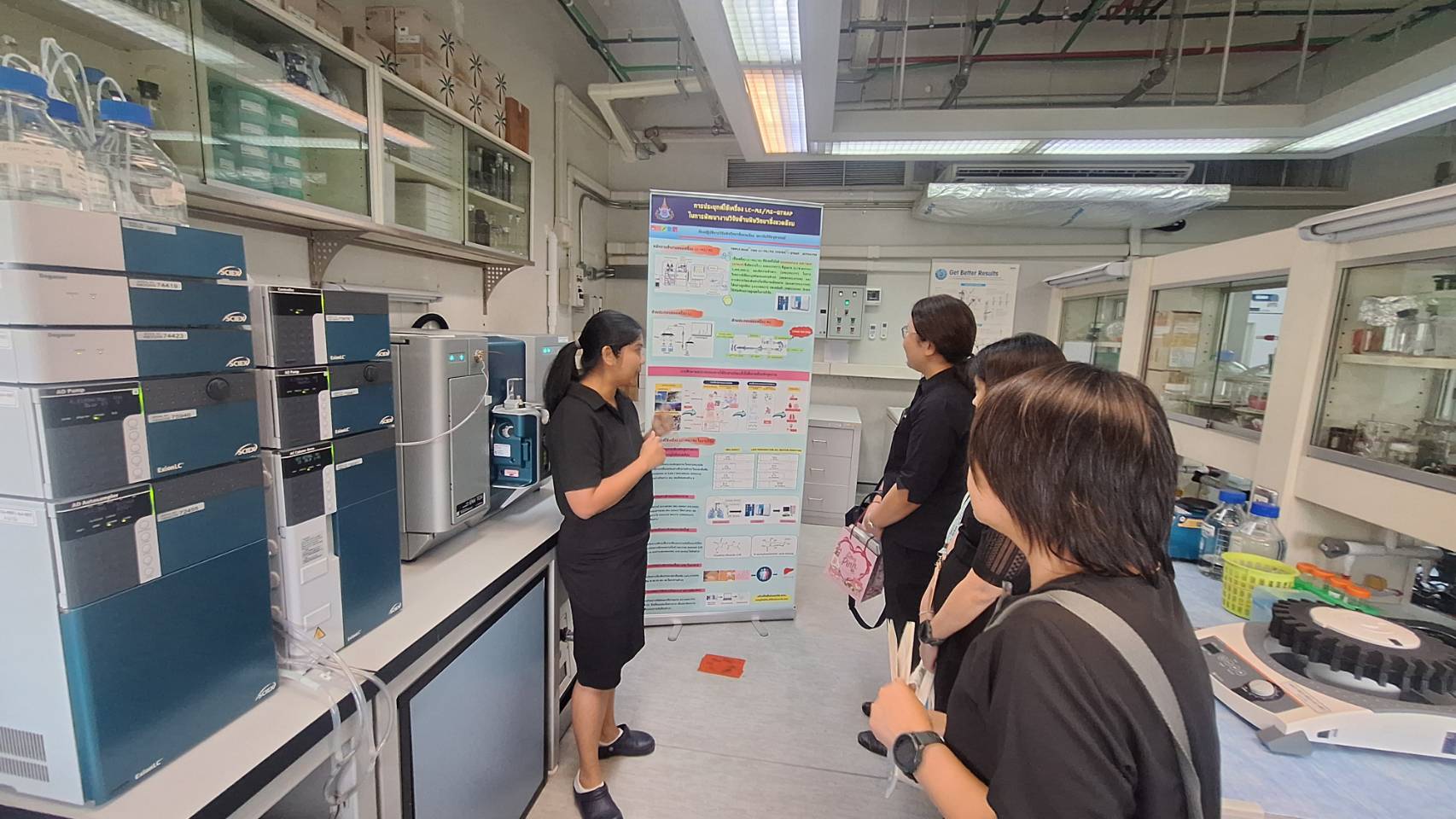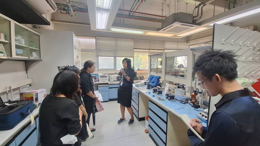 จากนั้น คณะได้เข้าเยี่ยมชมห้องปฏิบัติการที่สำคัญของสถาบันฯ ได้แก่ ห้องปฏิบัติการวิจัยพิษวิทยาสิ่งแวดล้อม ห้องปฏิบัติการวิจัยเภสัชวิทยา และห้องปฏิบัติการวิจัยเทคโนโลยีชีวภาพ โดยมีนักวิจัยประจำห้องปฏิบัติการให้ข้อมูลเกี่ยวกับงานวิจัย เครื่องมือวิทยาศาสตร์ และแนวทางการดำเนินงานด้านวิทยาศาสตร์ชีวการแพทย์