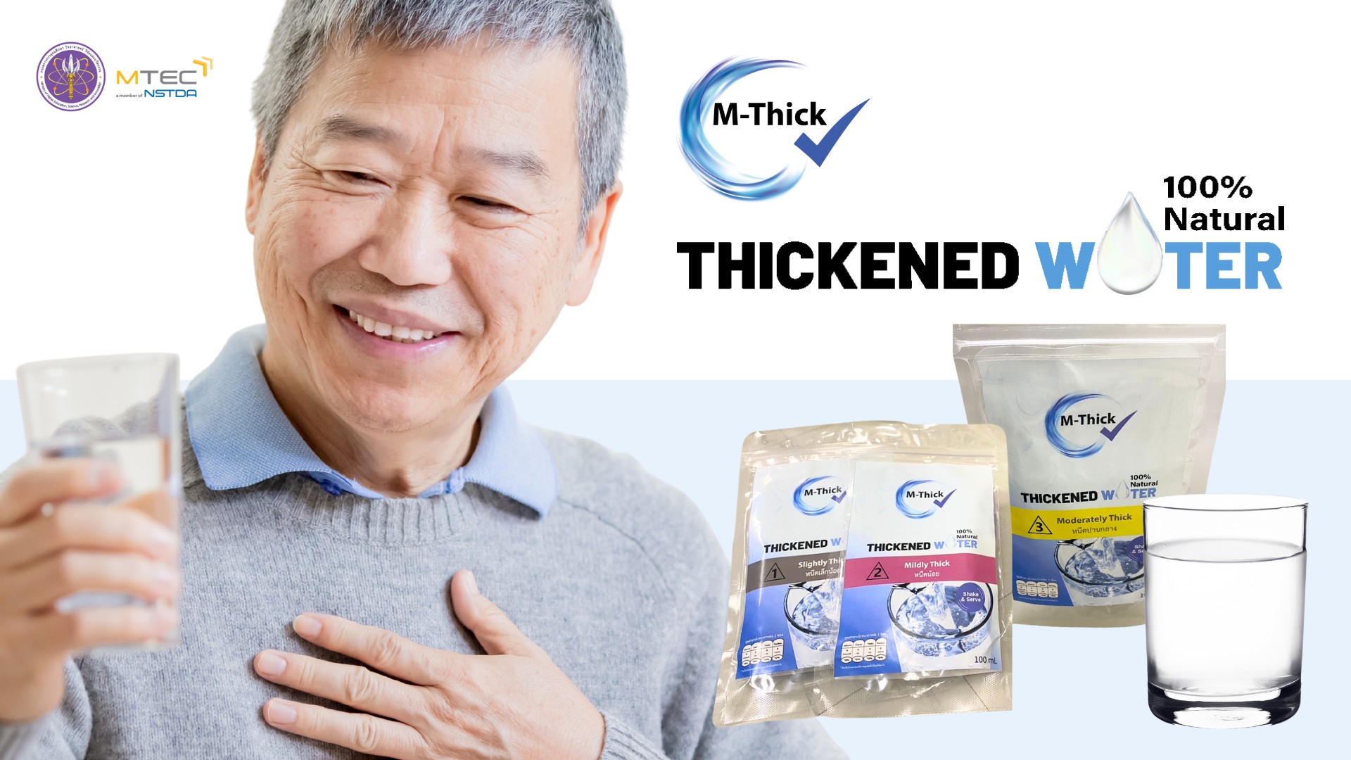 ในระยะแรก ทีมวิจัยได้พัฒนาผลิตภัณฑ์ในรูปของน้ำพร้อมดื่มภายใต้ชื่อ M-Thick ผลิตภัณฑ์นี้มีความหนืด 3 ระดับ ตามมาตรฐานของ IDDSI ของเครื่องดื่มสำหรับผู้มีภาวะกลืนลำบาก ได้แก่ หนืดเล็กน้อย (ระดับ 1) หนืดน้อย (ระดับ 2) และหนืดปานกลาง (ระดับ 3)