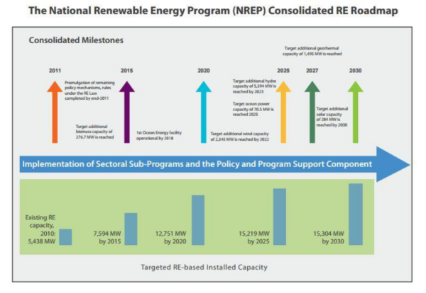 In 2011, the country adopted an ambitious plan aiming for 15.3 GW of renewable power capacity by 2030 and over 20 GW by 2040. To achieve this lofty goal, the National Renewable Energy Program (NREP) laid out a five step plan to reach all targets by 2027.• Raise geothermal capacity by 75%