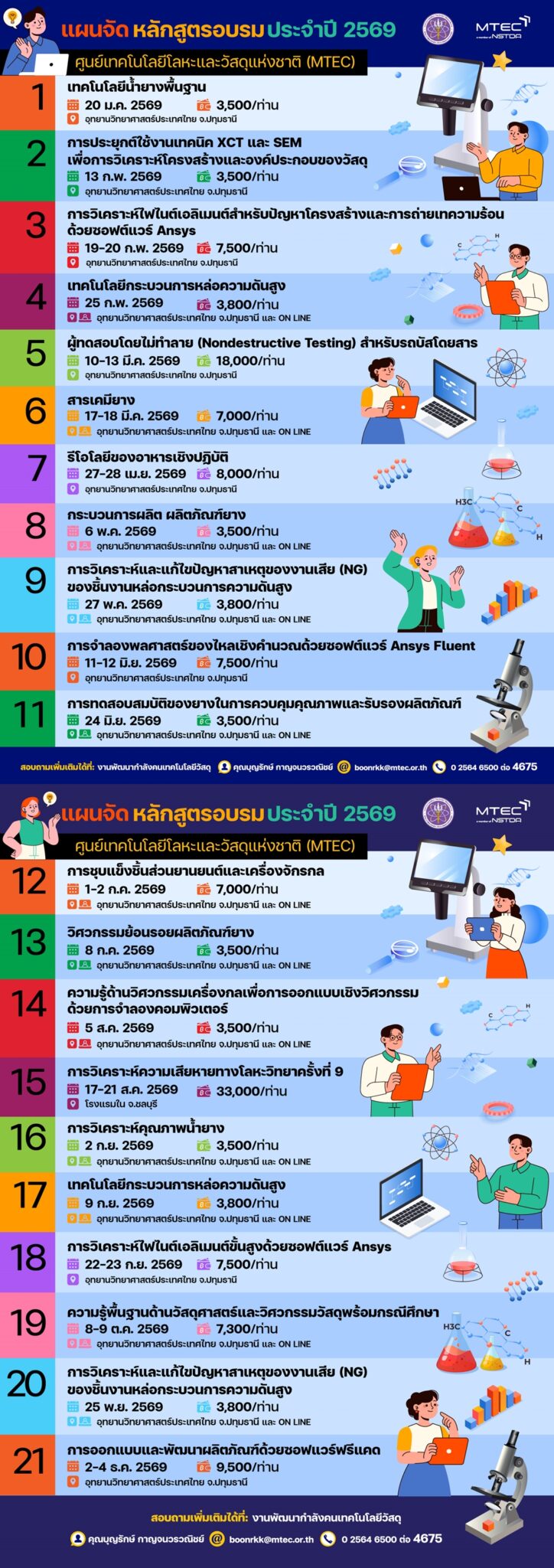 - หลักสูตรอบรม ความรู้พื้นฐานด้านวัสดุศาสตร์และวิศวกรรมวัสดุพร้อมกรณีศึกษา (วันที่ 30-31 ตุลาคม 2568)